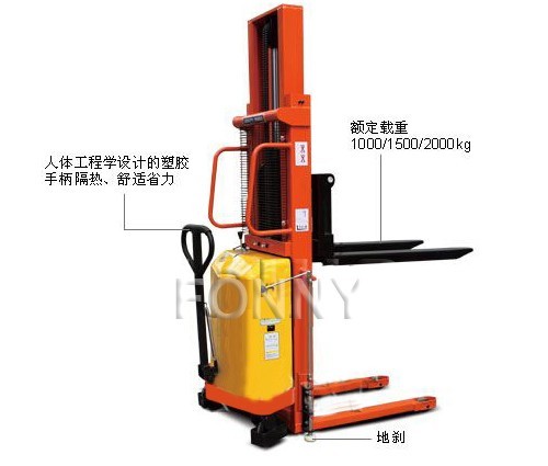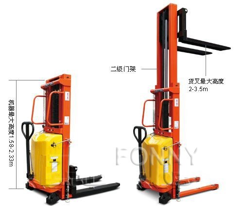 •具有裝卸和短距離運輸貨物功能的兩用半電動叉車;