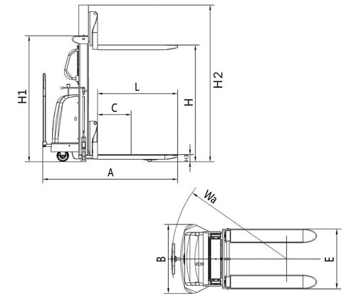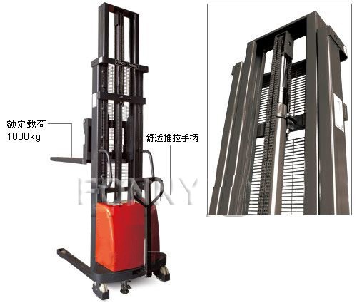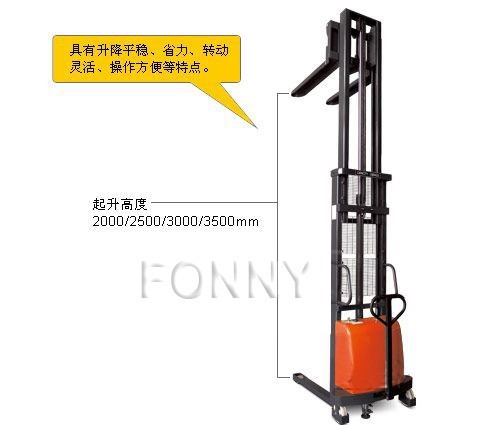 • 具有裝卸和短距離運(yùn)輸貨物功能的兩用半電動(dòng)堆高車;