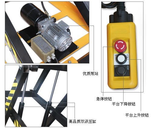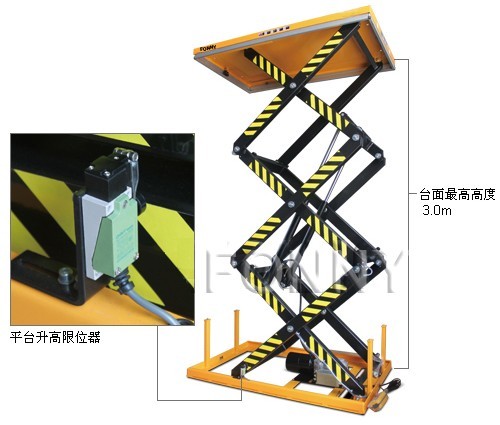 • 臺(tái)面下方配有安全檔條裝置,當(dāng)臺(tái)面下降遇到障礙物停止下降,確保安全;