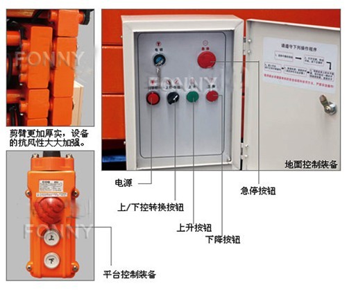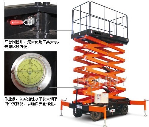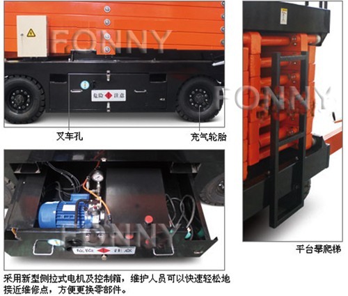 • 平臺升降剪叉部分采用寬截面錳鋼矩形管,使得運行更加平穩(wěn)、可靠;