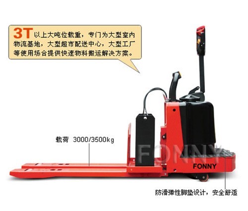 隨著大型物流集散中心的不斷發(fā)展,以及對(duì)搬運(yùn)效率的要求不斷提高,單次托盤(pán)承載要求往往突破傳統(tǒng)電動(dòng)搬運(yùn)車(chē)2噸的承載能力,并且要求超常規(guī)的高速行走以解決超大空間內(nèi)的高效搬運(yùn)。大噸位電動(dòng)搬運(yùn)車(chē),專(zhuān)門(mén)為大型室內(nèi)物流基地,大型超市配送中心,大型工廠等使用場(chǎng)合提供快速物料搬運(yùn)解決方案。