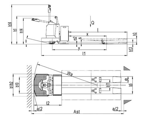 通道寬度,帶1000×1200mm托盤(pán)(Ast) |