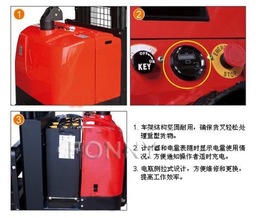 • 電瓶側(cè)拉式設(shè)計(jì),方便維修和更換,提高工作效率。