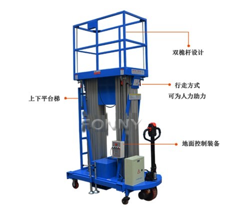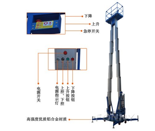 • 平臺控制:平臺上標(biāo)有操作動作標(biāo)示圖,易于操作。地面也可控制設(shè)備的升降、旋轉(zhuǎn);