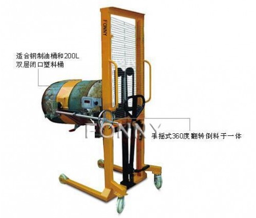 ·適合鋼制油桶和200L雙層閉口塑料桶的搬運、堆高、360度翻轉倒料于一體;