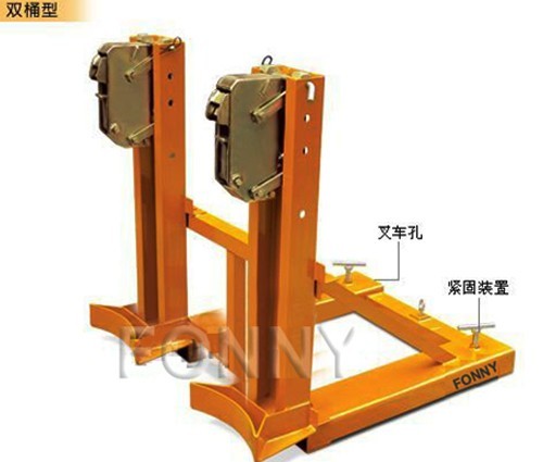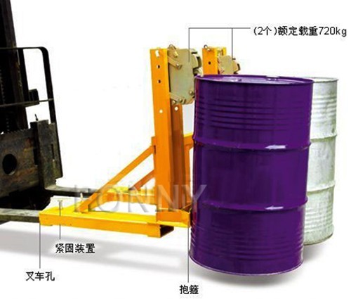 • 通過安裝于叉車自動夾鉗鎖可搬運1或2個油桶,可以完全抓住甚至是粗糙表層的油桶